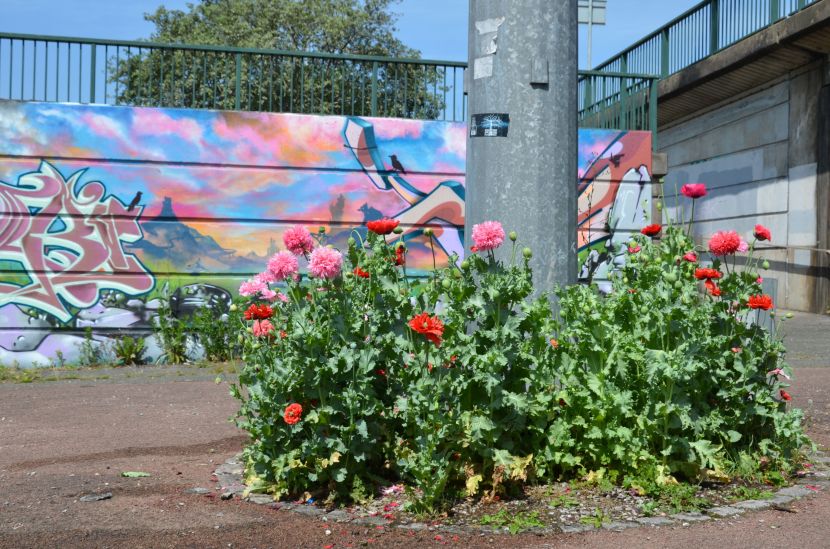 At the Cumberland Piazza we have nothing to sell, only an invitation to wander round and look at our eclectic mix of street art, mural paintings and planted areas. This community led regeneration project was instigated by the late, great Ray Smith of Hotwells and Cliftonwood Community Association who invited Anna Haydock-Wilson to get involved in 2010 to see if arts could play a role in changing the site from a grey, empty, underused and vandalised space into a vibrant community space. It is a work in progress, but thanks to all the members of the community, artists, architects and landscapers we’ve had working with us, things have changed dramatically over the past few years.